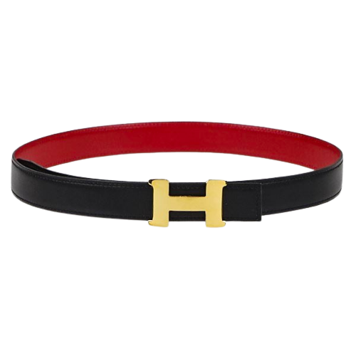 Black On Red Classic Gold H Reversible Leather 32mm, Size 70